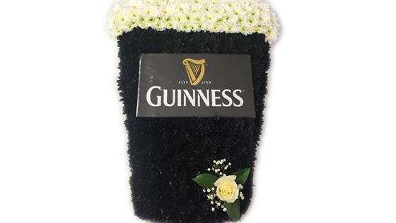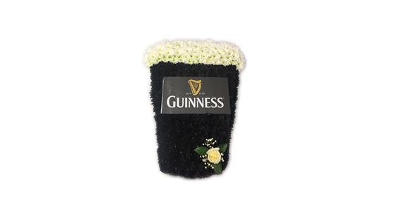 Hand crafted pint of Guinness funeral tribute with a mixed flower spray.