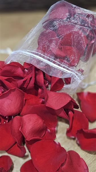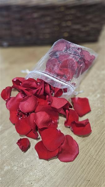 Create an instant romantic atmosphere by adding a bag of scatter petals to your order. Luxuriously rich red rose petals, perfect for scattering over your dinner table, across the bed, or wherever romance takes you.